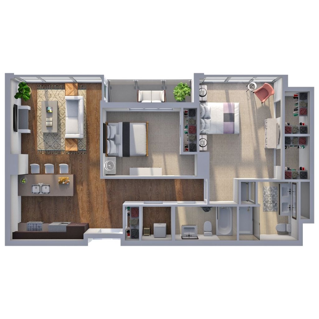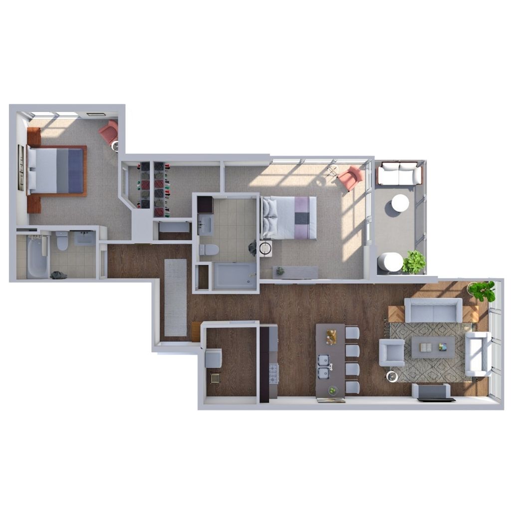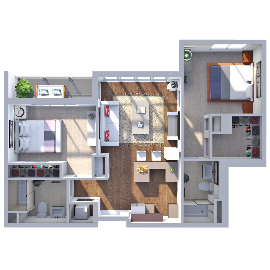 2 Bedroom 2 Bath 993 Sq Ft