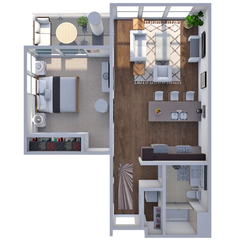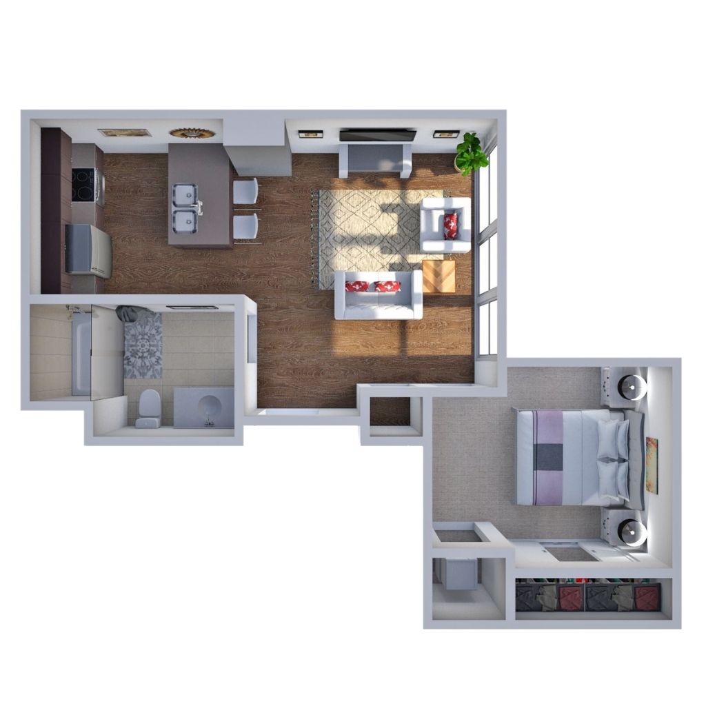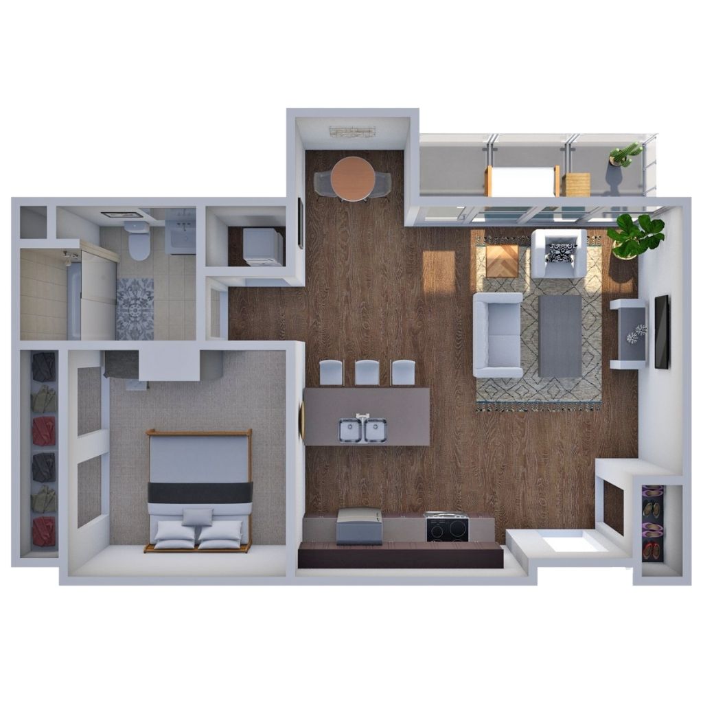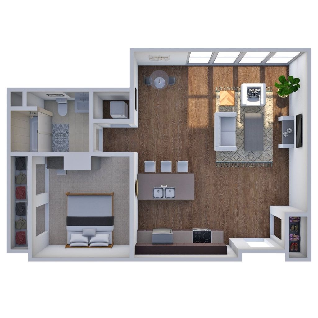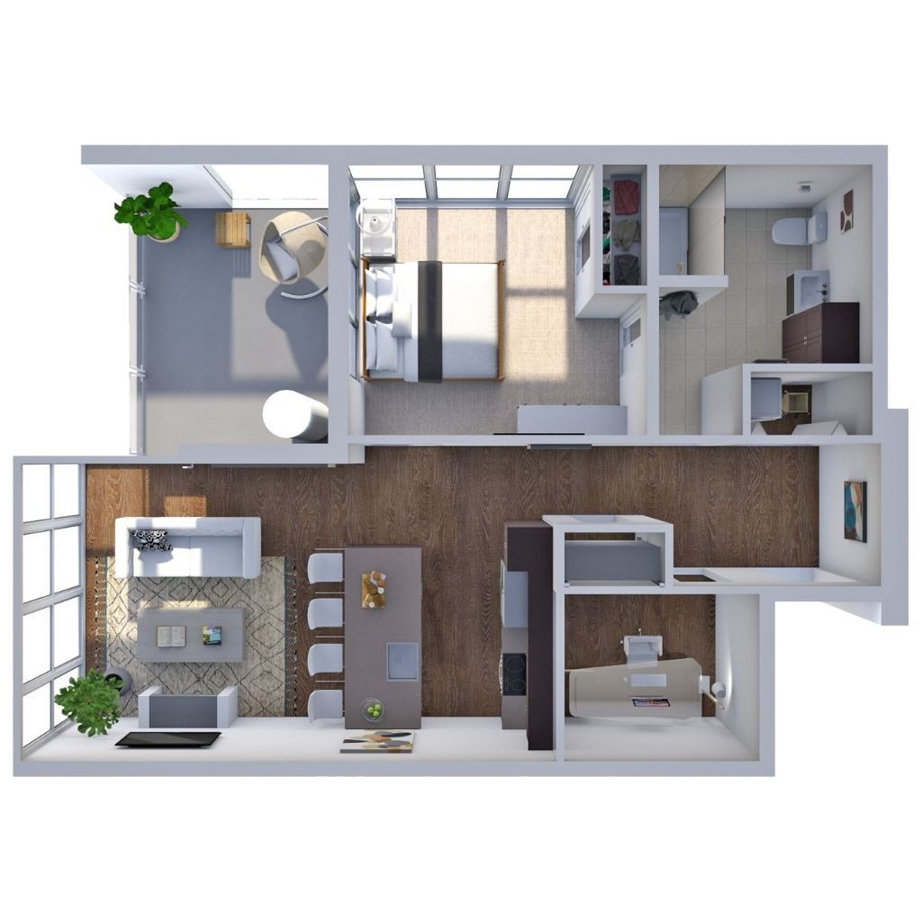 1 Bedroom 1 Bath 747 Sq Ft