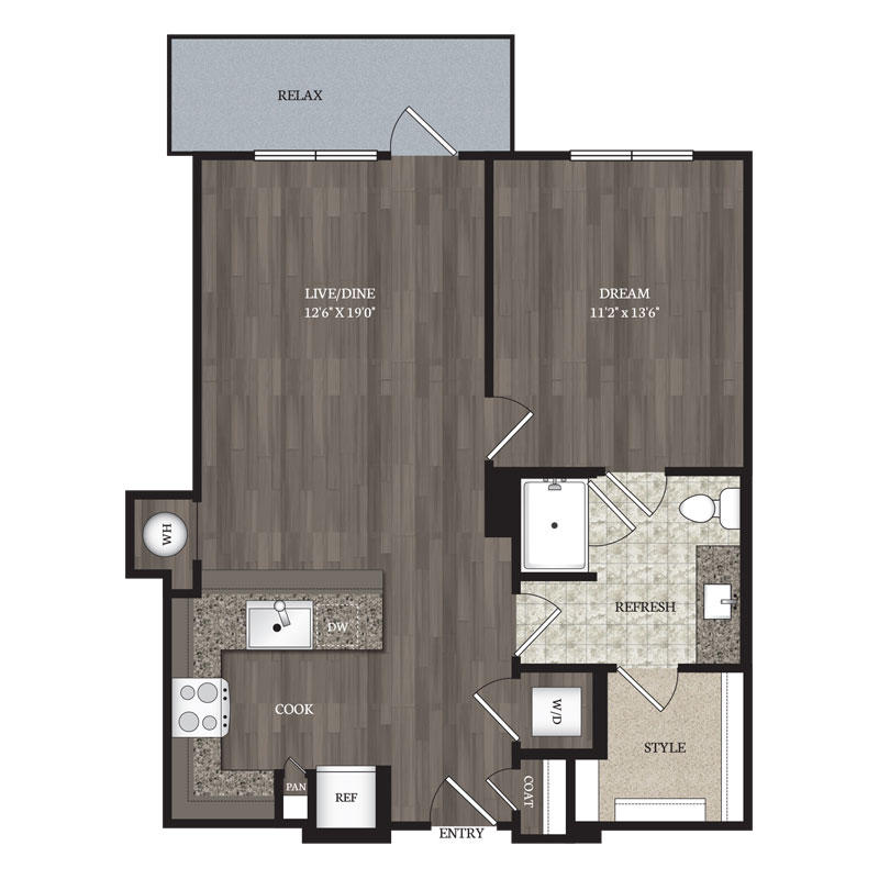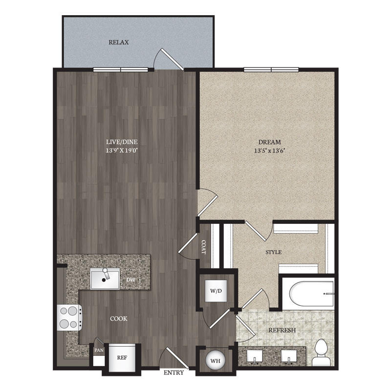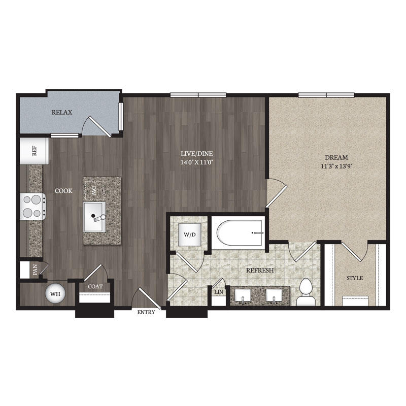 1 Bed – 1 Bath 755 Sq Ft Rent: $1575 – $1660