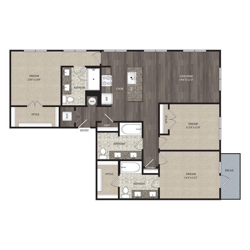 3 Bed – 3 Bath 1469 Sq Ft Rent: Please Call For Pricing.